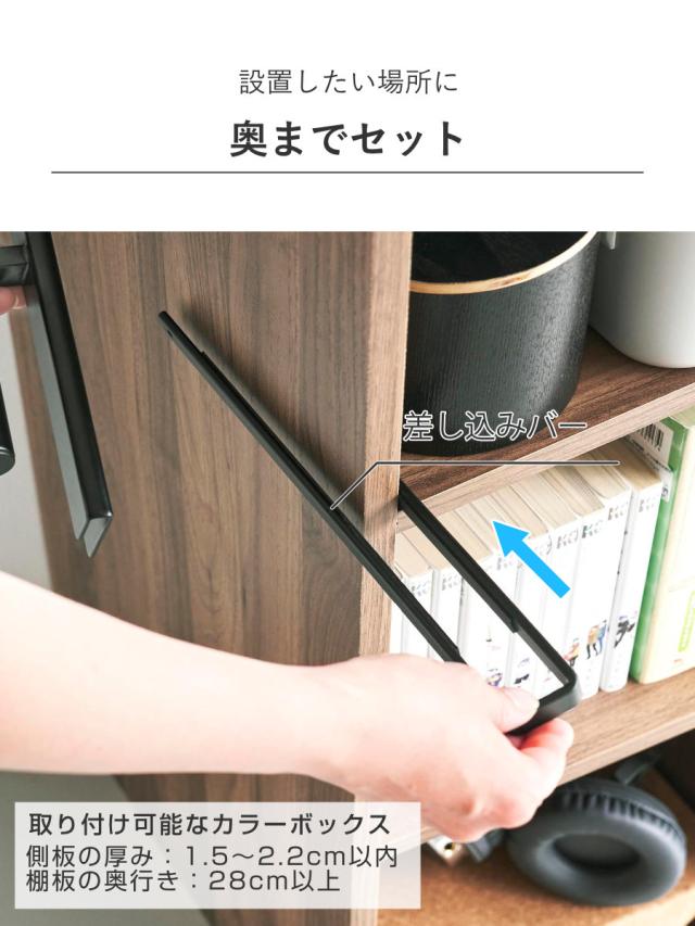 レイアウトやカラーボックスの向きに対応して左右どちらの側板にも取り付けられます。