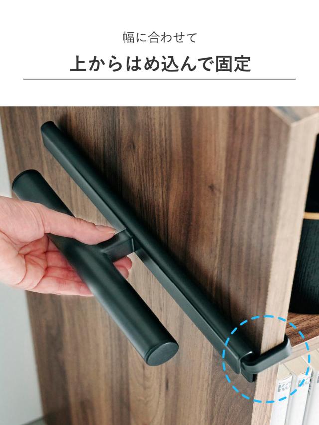 フックを差し込みバー(U字部分)の端に合わせて上からしっかりはめ込みます。