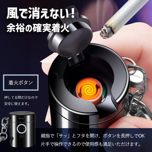 ライター USB充電式 電熱ライター LEDライト 充電 ライト 点灯 光る 防水機能 ライター 火を使わない 電気 ライター たばこ タバコ 紙巻 おしゃれ アウトドア 飲み会 超軽量 安心 安全 ミニライト キーリング キーホルダー ギフト 懐中電灯 おしゃれ 黒 銀 軽量設計