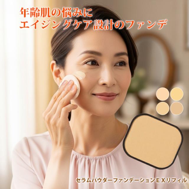 パピリオ セラムパウダーファンデーションEX 詰替 リフィル日本製 カバー力 崩れにくい メイク崩れ防止 保湿力 くすみカバー 毛穴悩み 保湿ファンデ 和漢エキス 乾燥 肌荒れ防止 毛穴カバー エイジングケア