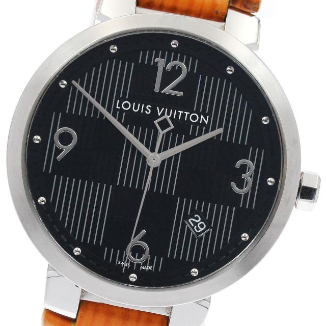 ルイ・ヴィトン LOUIS VUITTON Q1D07 タンブール スリム ダミエ グラフィット デイト クォーツ メンズ _899887【ev10】