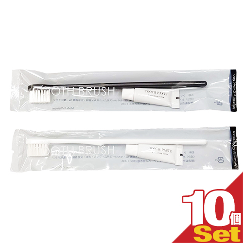 (あす着)(ネコポス)歯ブラシセット チューブ付き3g ×10本 色は当店おまかせ!!(ホワイト・ブラックの2色) - すぐに使える便利な歯ブラシ。(ホテルアメニティ)(使い捨て歯ブラシ)(個包装)(送料無料)