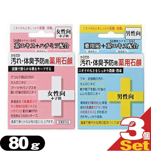 【保湿成分配合】クロバーコーポレーション からだの汚れ・体臭予防用薬用石鹸 80g(男性向・女性向+子供)3個セット アソート可能 - 薬用石けん・薬用石鹸・薬用せっけん