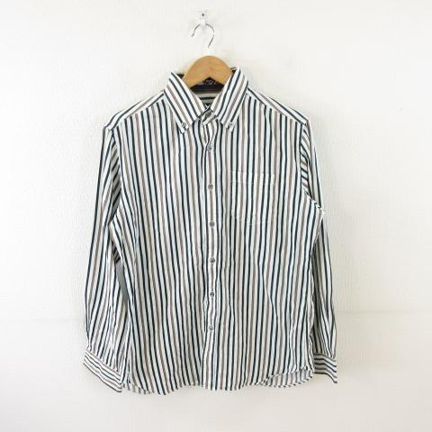 【中古】インターメッツォ INTERMEZZO ボタンダウンシャツ ストライプ 長袖 白 黒 L *A669 メンズ