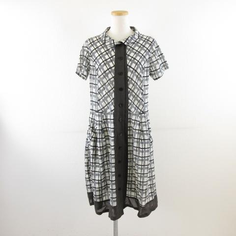【中古】t.b ティービー センソユニコ ひざ丈シャツワンピース 半袖 チェック グレー 黒 38 *A679 レディース