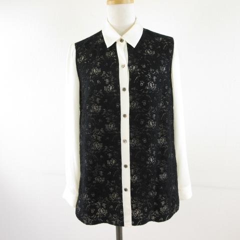 【中古】ノーリーズ Nolley's ud シャツ ブラウス 長袖 レース オフホワイト 白 黒 38 *T838 レディース