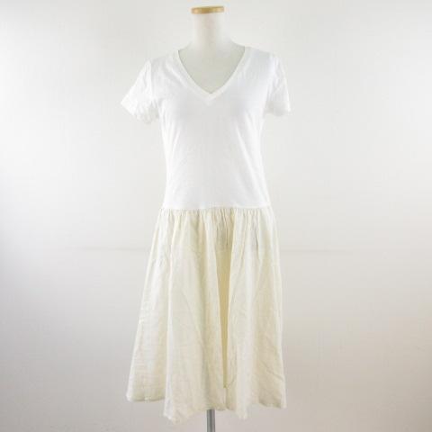 【中古】ビアズリー BEARDSLEY ガリャルダガランテ ワンピース ミディ丈 半袖 Vネック 白 ベージュ F レディース