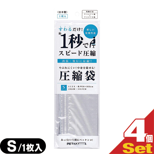 【収納用品・圧縮袋】いづみ企画 PETAKO ペタコ Sサイズ(300×350mm)×4個セット - すわるだけ、あっ!という間にスピード圧縮!1秒で圧縮できる圧縮袋。鞄に丸めなくても入れやすいサイズ設計です。