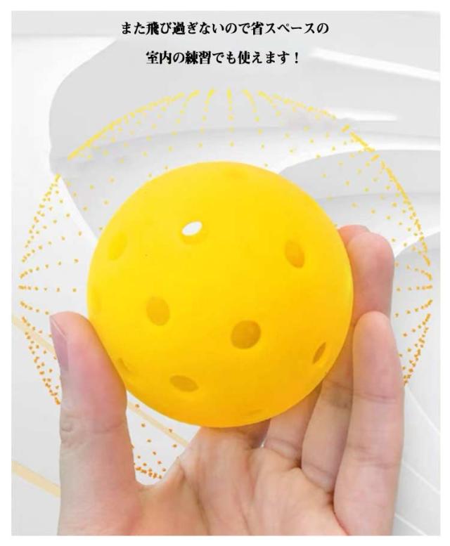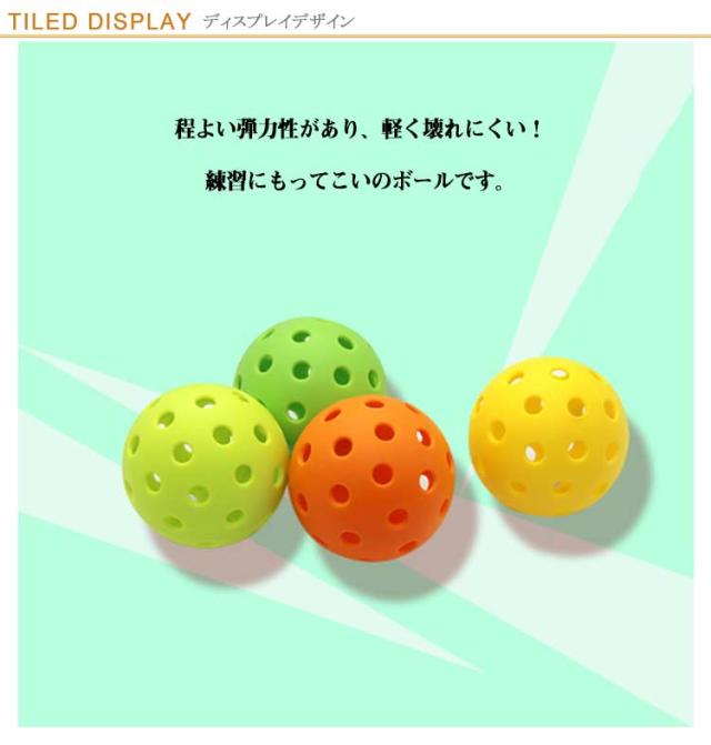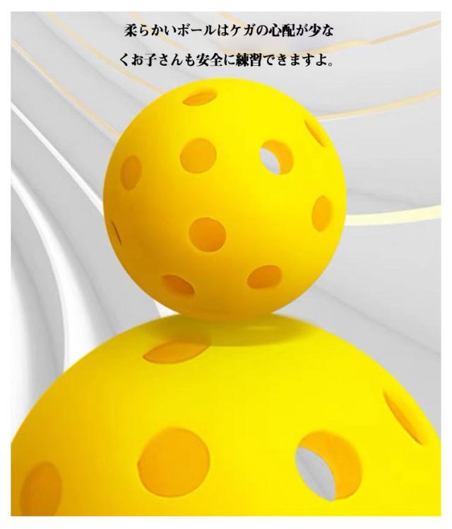 | バッティング練習穴あきボール 【 20個入 】 程よい弾力性があり、軽く壊れにくい!練習にもってこいのボールです。 また飛び過ぎないので省スペースの室内の練習でも使えます! 柔らかいボールはケガの心配が少なくお子さんも安全に練習できますよ。 夜間でも見えやすく・飛ばしても見つけやすくを実現しました! 夜の練習のお供に最適なボールです。雨や雪などの天候の悪い時にも◎ | |