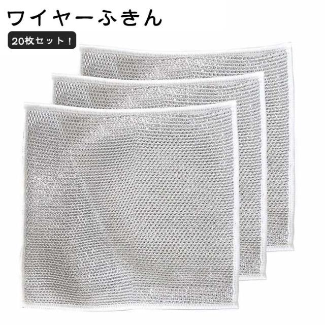 20枚セット!ワイヤーふきん 金属ふきん 傷を着けずに 食器洗い雑巾 20×20cm 食器洗い メッシュ クロス キッチンタオル 再利用可能 ボトル洗浄 食器拭き 多目的 家庭用 業務用 送料無料