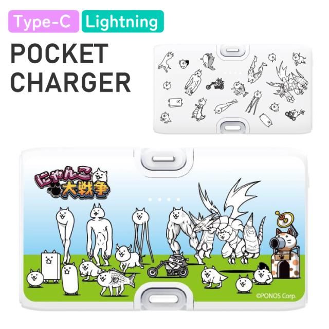 にゃんこ大戦争 モバイルバッテリー にゃんこ キャラクター グッズ スマホ 持ち運び 充電器 小型 直挿しタイプ 直接充電 充電ケーブル不要 スマホ iPhone Lightning Android type-C 防災グッズ もばじゅう 持ち運び PSE認証 充電 PND-06