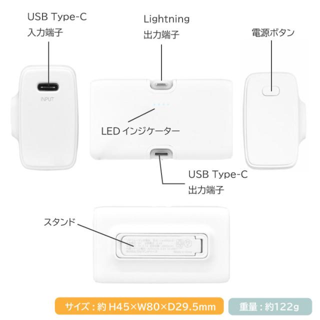 Lightning、USB Type-C端子搭載のリチウムイオン充電器です。 |