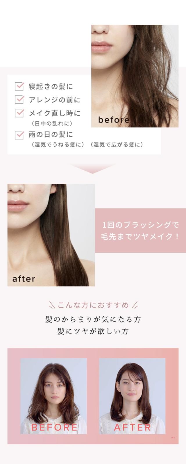 ヘアオイルを使用した後にブラッシングしていただくことで、オイルが髪全体にムラなく馴染み、より髪に負担なくからまりをほぐしていただけます。