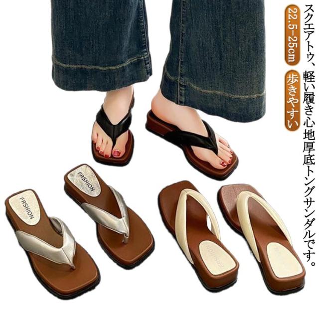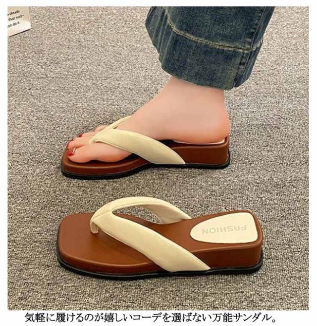 スクエアトゥ 厚底 トングサンダル サンダル レディース ビーチサンダル スリッパ トング 厚底サンダル トング サンダル 痛くない 3.5cm 歩きやすい 22.5-25cm