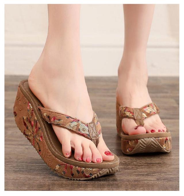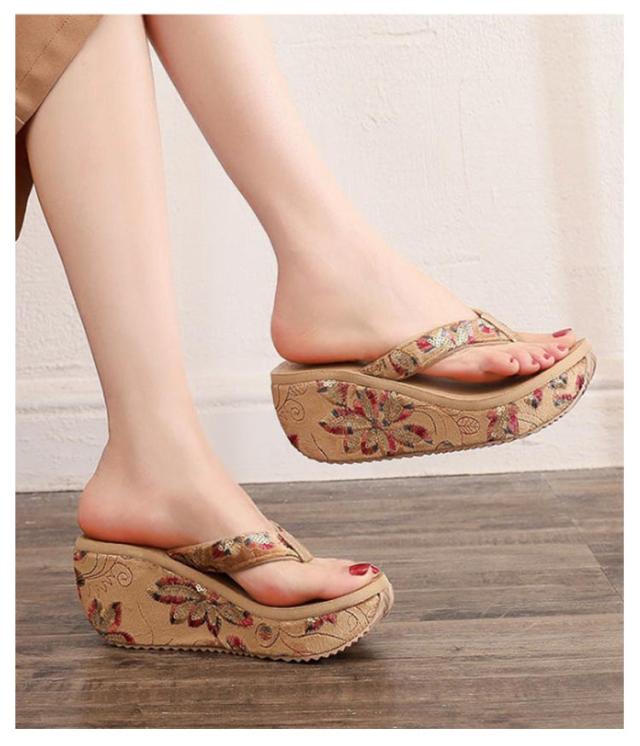 スパンコール ビーチサンダル 厚底 痛くない 7cm ウェッジヒール 厚底サンダル 軽い 厚底 トングサンダル ウェッジサンダル リゾート ビーチ プール レジャー用 砂浜 旅行 美脚 おしゃれ レトロ 22.5-24.5cm
