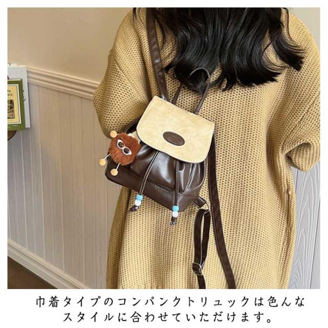 | コロンとした可愛いサイズ感がキュートなコンパクトミニリュック スムースな光沢感がありなめらかなフェイクレザーで触り心地も◎ シンプルでキュートなデザイン!マチのあるポケット付きで収納力も有り! 巾着タイプのコンパンクトリュックは色んなスタイルに合わせていただけます。 小さめだけど収納力有り!お財布やポーチなどしっかりと入るのが特徴です。 長めの持ち手がついているので手持ちバッグとしても使えます。 | |