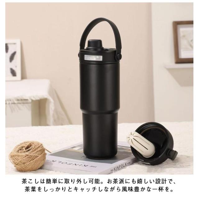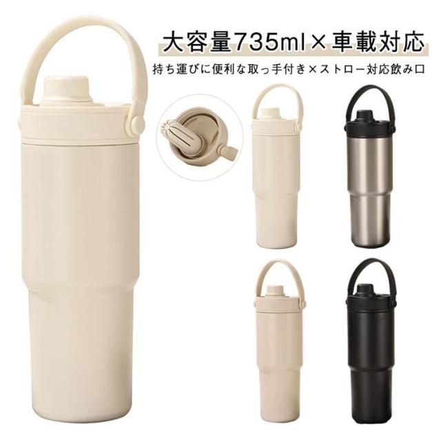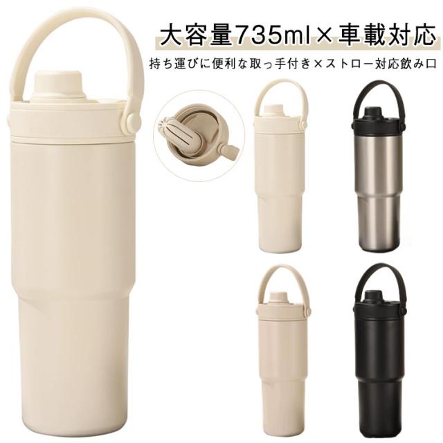 タンブラー 車用マグカップ 735ml 保温 保冷 メンズ レディース大容量 ステンレスボトル 取っ手付きマグ ティーボトル 断熱カップ 水筒 カフェマグ コーヒーマグ オフィス用 スポーツ ティーストレーナー付き 通勤 ギフト