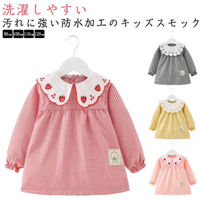 スモック 子供 女の子 ブラウス 長袖スモック 刺繍 お砂場着 砂遊び ベビースモック 可愛い チェック柄 お食事 エプロン 汚れ防止 絵画 外遊び 外遊び お食事 エプロン 保育園 幼稚園 赤ちゃん 幼児 防水エプロン 子供服 春 秋冬 ギフト 送料無料