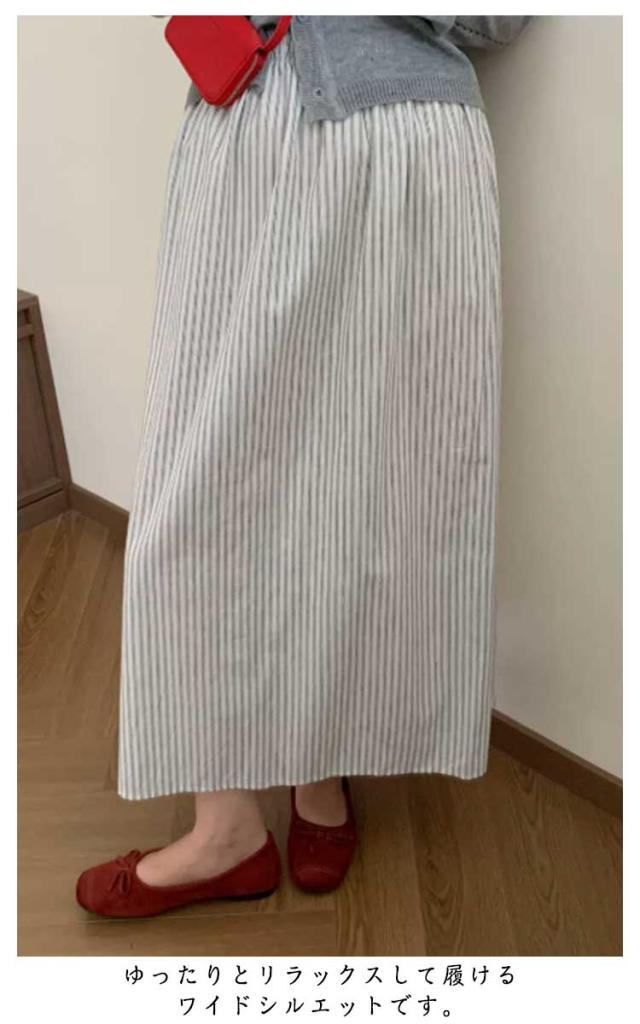 スカート レディース 夏 Aライン ストライプ ロング丈 ミドル丈 春秋 楽ちん ボトム 夏服 薄手 カジュアル 無地 シンプル かわいい ゆったり きれいめ ロングスカート aライン 体型カバー アウトドア 日常着 普段着