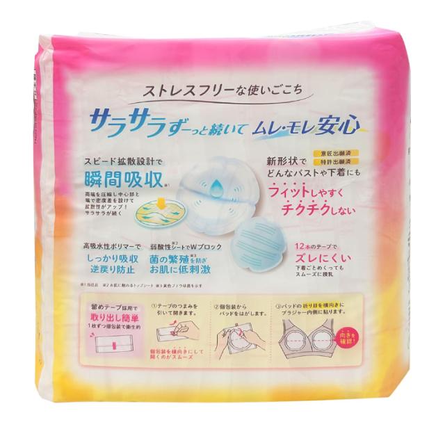 | 使用上の注意 | ●用途以外にはご使用にならないでください。 ●お肌に合わないときは使用を中止し、医師にご相談ください。 ●授乳の都度お取替えください。また、量の多い時も都度お取替えください。 ●お子様の手の届かない所に保管してください。お子様の誤飲誤食にご注意ください。 ●ご使用後はすぐに燃えるゴミとして各自治体の定める方法に従って処分してください。トイレには流さないでください。 ●お洗濯の際は必ず外してください。 ●水分やニオイを吸着する事があります。保管場所にご注意ください。 ●長期の保管は、ビニール袋に入れて、しっかり密封し保管してください。 |