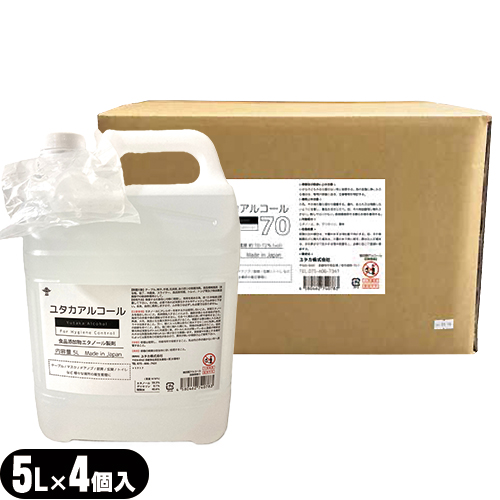 【日本製】【正規代理店】ユタカアルコール70 (Yutaka Alcohol) 5L(5000mL) ノズル付き×4個(1ケース) - 商品添加物発酵エタノール使用。エタノール濃度約70-72%)テーブル/マスク/ドアノブ/厨房/玄関/トイレなど 様々な場所の衛生管理に。
