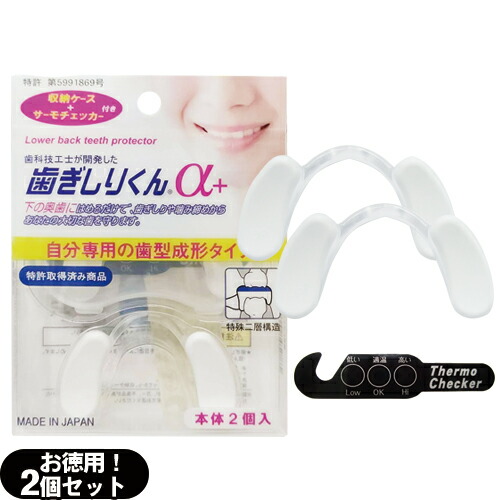 (メール便(日本郵便))歯ぎしりくんα+(アルファプラス) 2個入り - 収納ケース・サーモチェッカー付!(はめて寝るだけで不快な音、歯の損傷を防ぐ奥歯保護具)(送料無料)