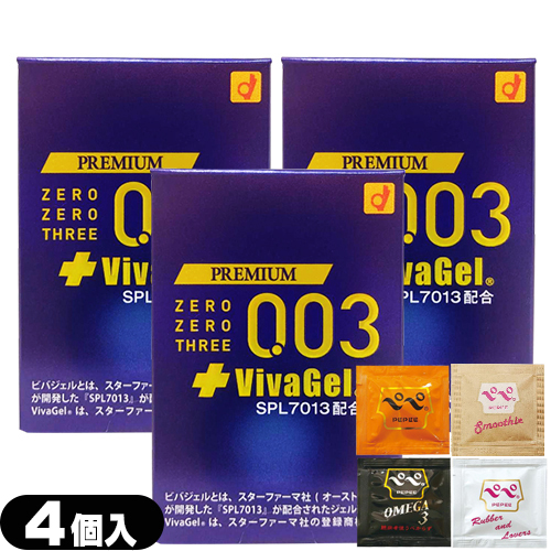 ◆(即日発送)(メール便(日本郵便))オカモト プレミアム ゼロゼロスリー + ビバジェル 4個入り×3箱セット(計12個) + ペペローション(5ml)セット(PREMIUM ZEROZERO THREE 003 VIVAGEL)(避妊用コンドーム)(送料無料)