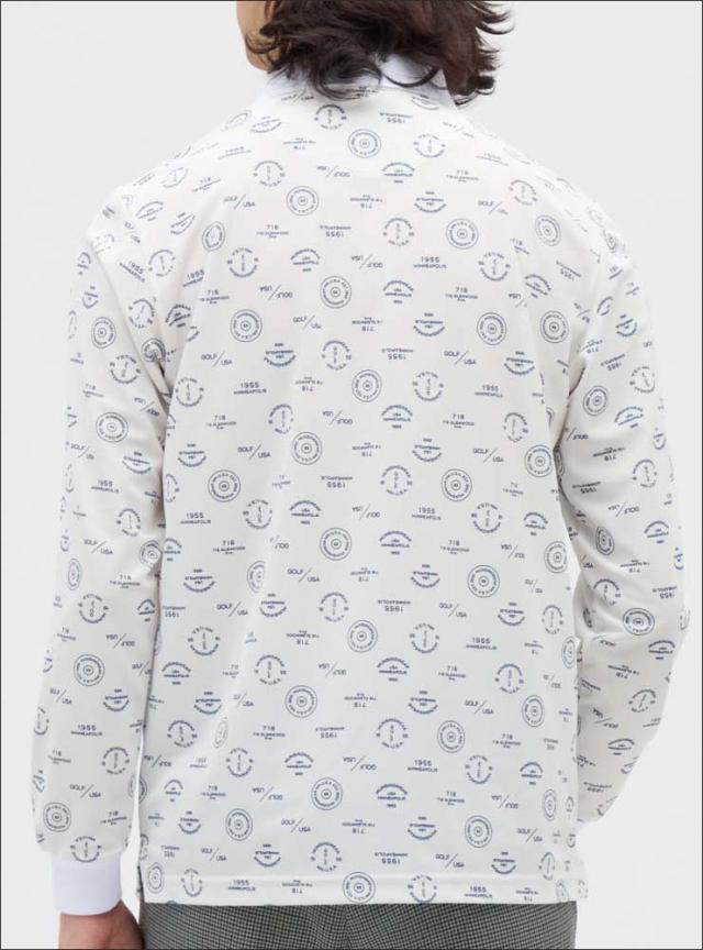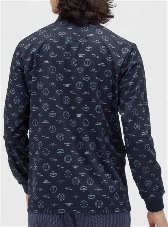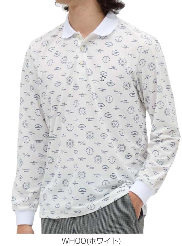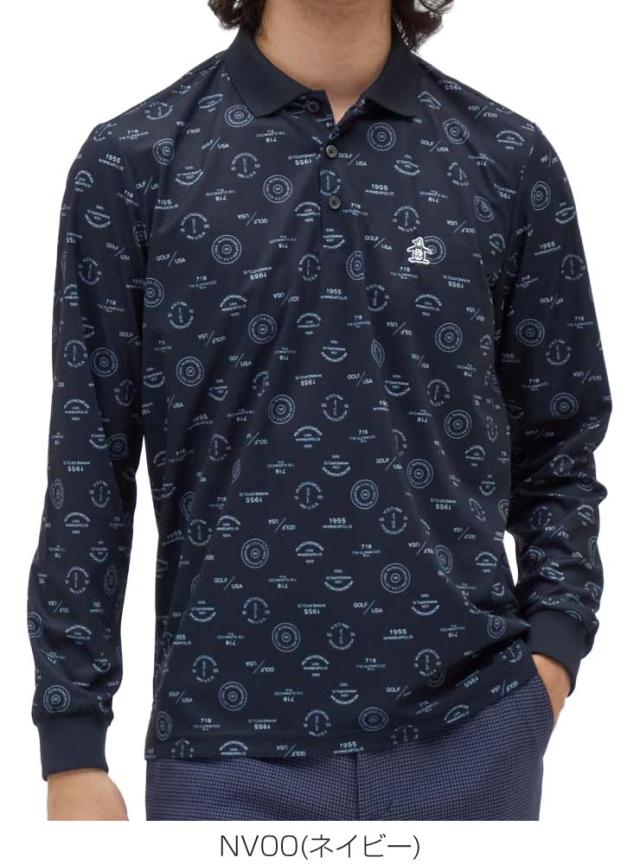 マンシングウェア メンズ ゴルフウェア サンスクリーン ロゴ総柄プリント 長袖 ポロシャツ MG5FLS80M |