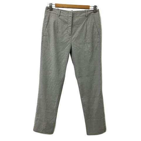 【中古】セオリー Theory パンツ テーパード ロング タック 無地 リネン 00 緑 グレー グリーン レディース