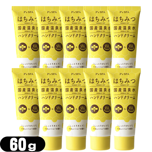 (あす着)(ハニーハンドクリーム)P’s SPA はちみつ+国産温泉水ハンドクリーム (しっとりタイプ) 60g x10個セット