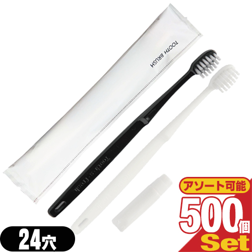 (あす着)(ホテルアメニティ)(個包装)日本製 使い捨て 歯ブラシセット 24穴 ハミガキ粉チューブ付き3g (ホワイト・ブラックの2色から選択) x500本(1ケース売り) (送料無料)