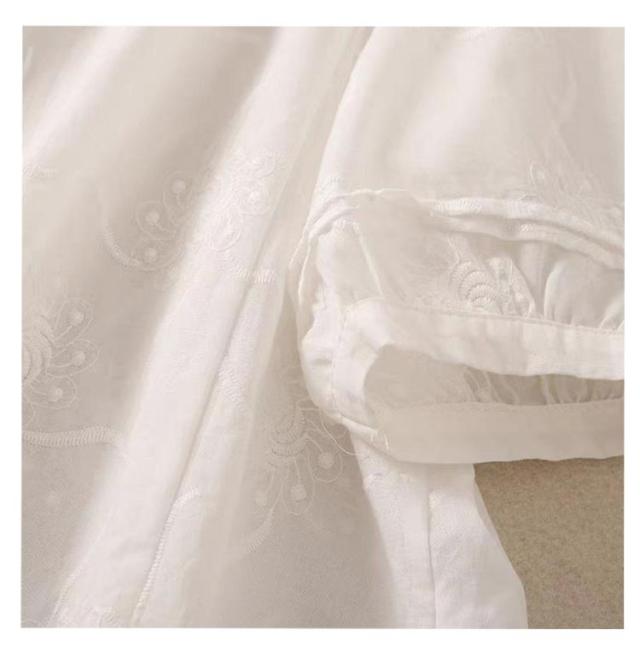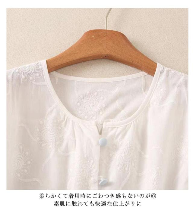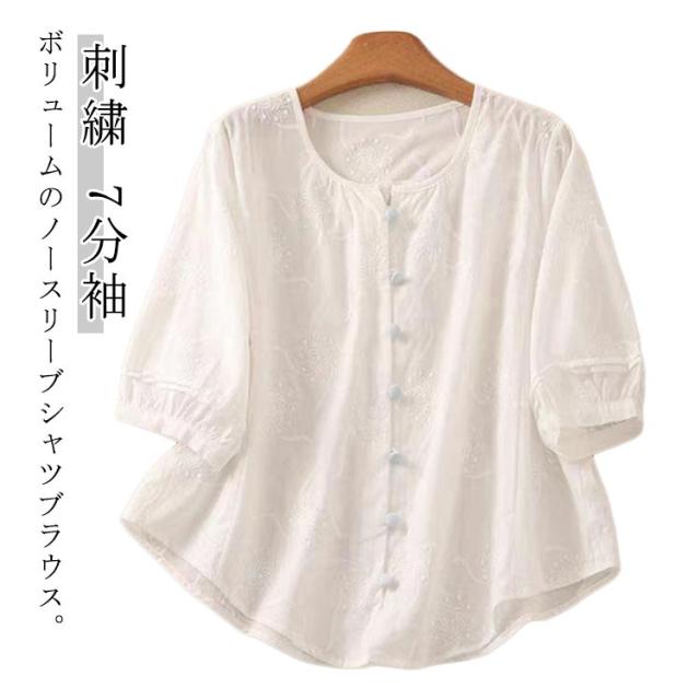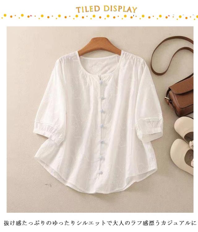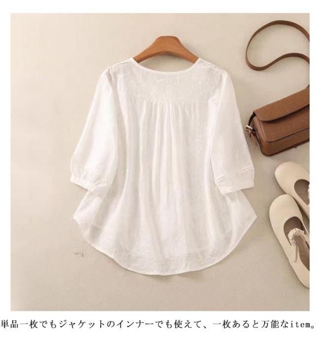 ブラウスシャツ 刺繍 夏 トップス ラウンドネック かわいい シャツ ブラウス 花 レース ゆったり 7分袖 シンプル おしゃれ 七分袖 夏コーデ 無地 ブラウス きれいめ 夏用 フォーマル 薄手 オフィス カジュアル 20代 30代