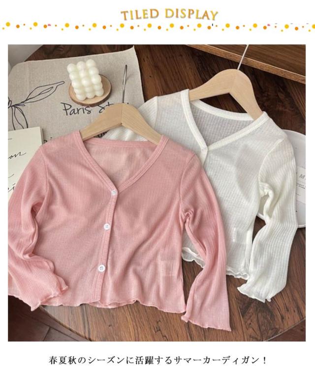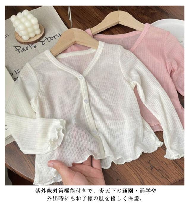 カーディガン サマーカーディガン 女の子 長袖 透け感 子供服 無地 シアー UVカット シアーカーディガン キッズ 無地 サマーカーディガン 男の子 薄手 可愛い シンプル ラッシュガード サマーニット ベビー 親子ペア