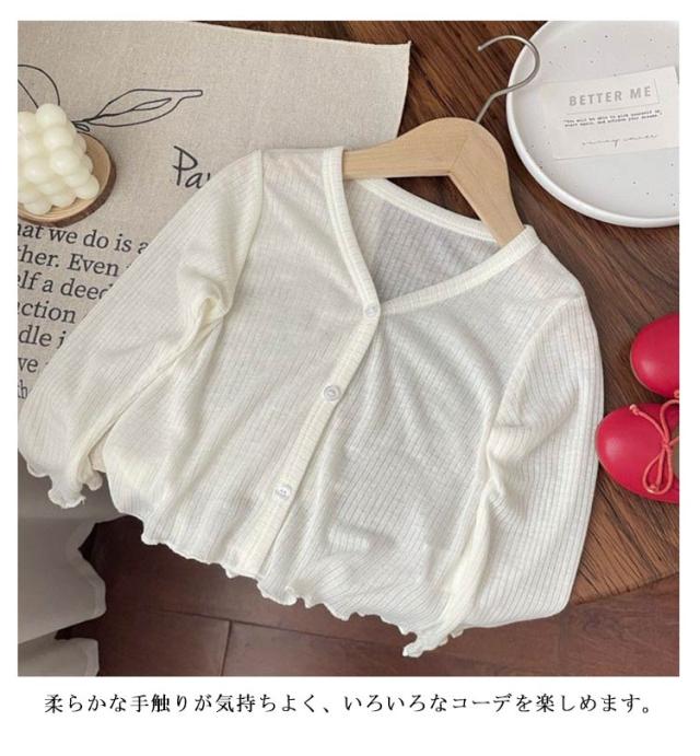 | シンプルでかわいい子供用サマーカーディガン。 春夏秋のシーズンに活躍するサマーカーディガン!紫外線対策機能付きで、炎天下の通園・通学や外出時にもお子様の肌を優しく保護。薄手素材で暑さを軽減しながら、冷房対策としても最適です。 通気性に優れた生地でさらっと快適な着心地。 柔らかな手触りが気持ちよく、いろいろなコーデを楽しめます。 急な温度の変化や、虫よけ、日焼け防止にも役立ちます。入園式、発表会、結婚式、卒業式、演奏会、披露宴 誕生日、パーティー、七五三、子供の日などフォーマルにもオススメ。 | |