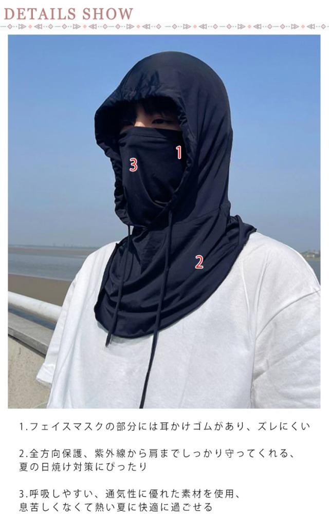 | フェイスマスクとしてネックカバーとして使える、様々なシーンで活躍出来る! 呼吸しやすい、通気性に優れた素材を使用、息苦しくなくて熱い夏に快適に過ごせる。 全方向保護、紫外線から肩までしっかり守ってくれる、夏の日焼け対策にぴったり。 フェイスマスクの部分には耳かけゴムがあり、ズレにくい。 ふんわり被れるフードは着脱もしやすく、シーンで使い方を選べサッと使えるのが便利。 普段使い以外にもウォーキングやスポーツ観戦などにも役立ちます。 フードの小顔効果や、マスクですっぴん隠しにも使えるのも嬉しい。 | |