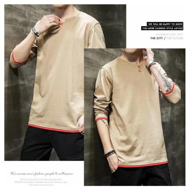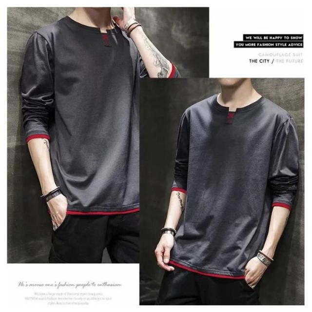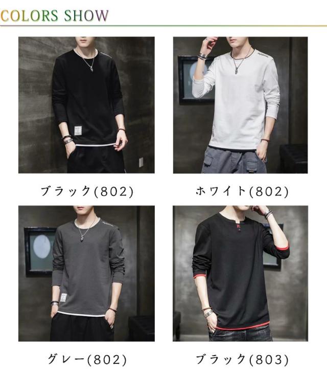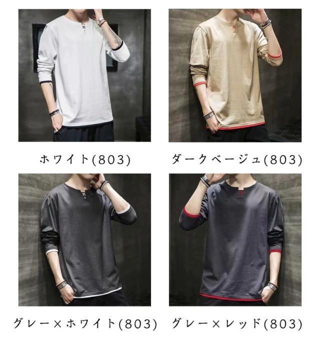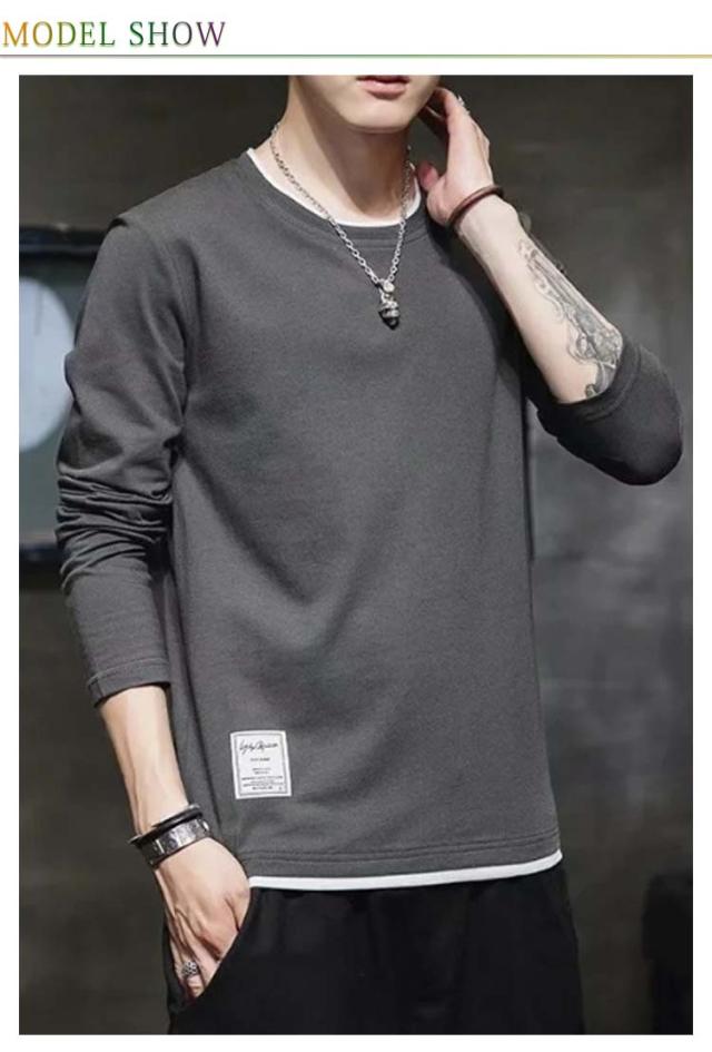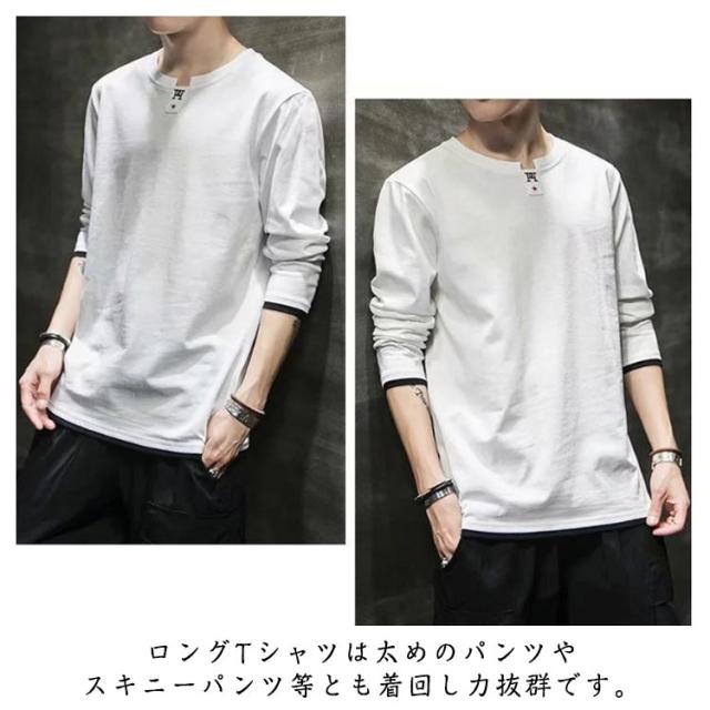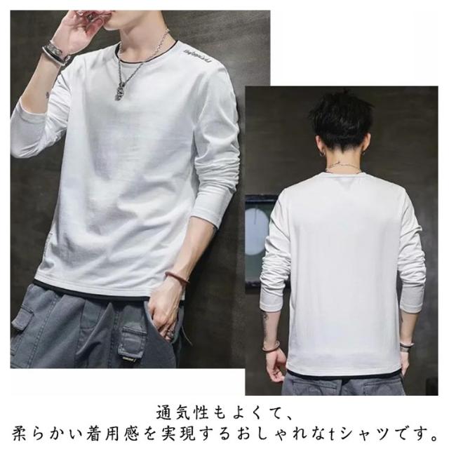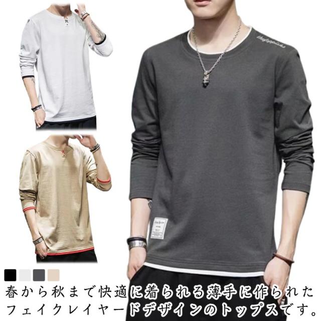 重ね着風 長袖Tシャツ メンズ トップス カットソー ロングtシャツ 長袖 ゆったり tシャツ 部屋着 春秋 カジュアル クルーネック 柔らか メンズ 快適 大きいサイズ シンプル