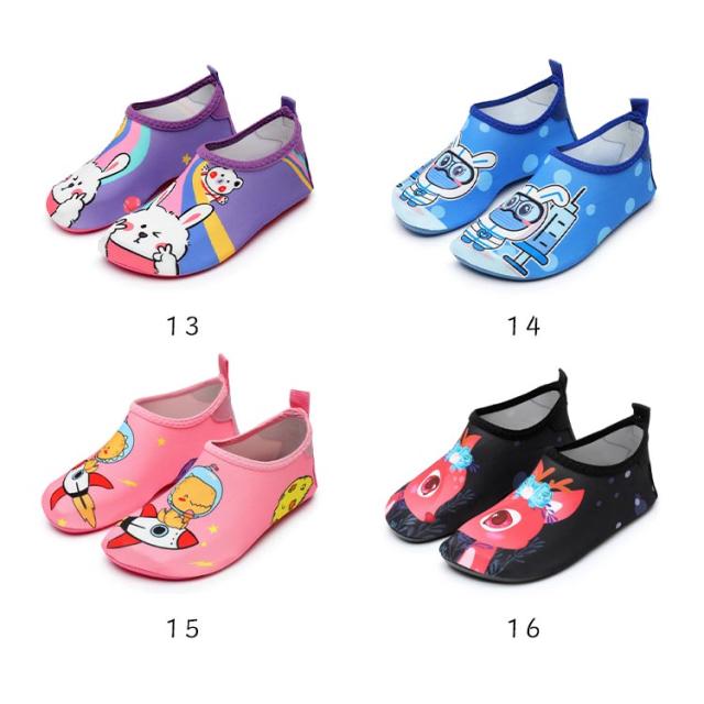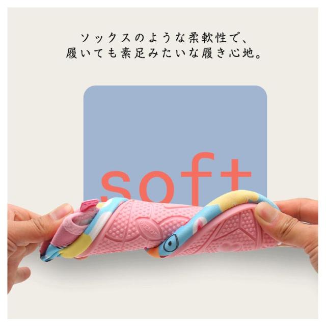 | 全20柄!子供の足を守るウォーターシューズです。 通気性に優れた素材を使用し、汚れても気軽に洗えてすぐ乾きます。 ソックスのような柔軟性で、履いても素足みたいな履き心地。 滑り止め付きソールで濡れた場所でもしっかりグリップして滑りにくい! かかとにはフックループ付きで、干すときや収納時にも便利! ユニセックスデザインで、女の子も男の子も楽しくおしゃれに! 海・プール・川遊び・公園など、濡れても乾きやすく、1日中履いていられます。 | |