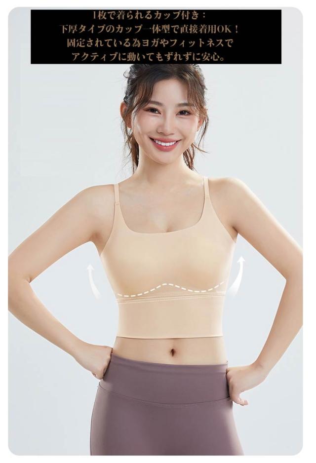 | カップ付きキャミソール 体を動かしやすく着心地が良い 速乾素材を採用: 速乾性に優れ、さらりとした質感で気持ちのよい着心地。 洗濯してもすぐ乾いて、とっても便利。 程よいフィット感: 程良い薄さのしっかりとした生地で体にフィットし着こなしやすい。ごわつきにくく、重ね着にもぴったり! 1枚で着られるカップ付き: 下厚タイプのカップ一体型で直接着用OK! 固定されている為ヨガやフィットネスでアクティブに動いてもずれずに安心。 伸縮性たっぷりでストレスフリー ストレッチ性のある生地を使用しているので、動きやすく様々なポーズに対応。 | |