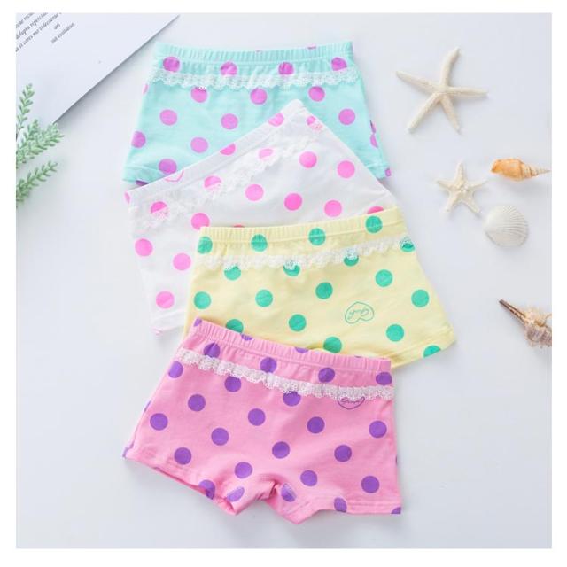 柔らかい 4枚セット 下着 女の子 キッズパンツ レース ドット柄 かわいい 柄入り ガールズ 子供用 保育園 おしゃれ ジュニア ボクサーパンツ パンツ 肌に優しい 子供下着 4枚セット 下着 ボクサー 可愛いパンツ 綿 女児