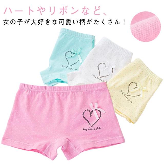 ドット柄 子供下着 4枚セット レース ジュニア おしゃれ ショーツ かわいい 保育園 キッズパンツ 女の子 子供用 パンツ ボクサーパンツ ガールズ 柔らかい 肌に優しい 4枚セット 柄入り 下着 ボクサー 可愛いパンツ 綿 女児