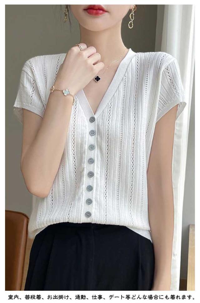 Vネック 春夏 トップス 透け感 ニット 半袖 おしゃれ ショート丈 サマーニット きれいめ ニットソー レディース サマーセーター 春 夏 カジュアル 夏物 Tシャツ 韓国ファッション Tシャツ ニット かわいい シンプル 秋 ゆったり 薄手 大人 アウトドア 普段着 通学