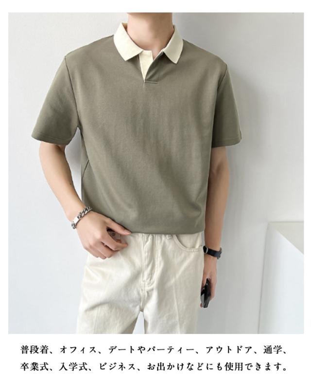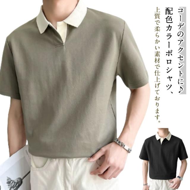 半袖 ビジネス ゴルフウェア ポロシャツ 夏 韓国ファッション ポロシャツ 襟 バイカラー ポロシャツ 配色 30代 20代 ゴルフ ポロシャツ Tシャツ カットソー かっこいい カジュアルシャツ