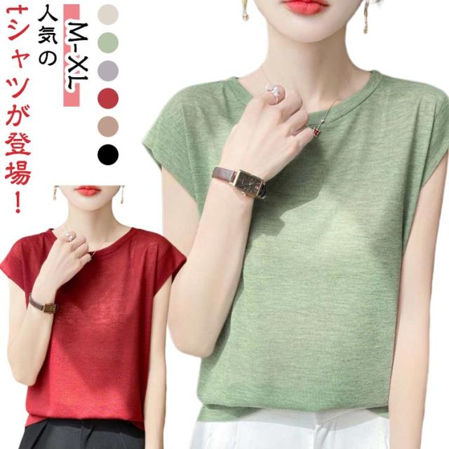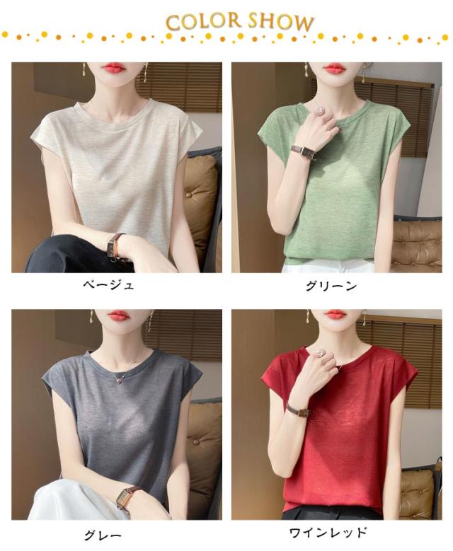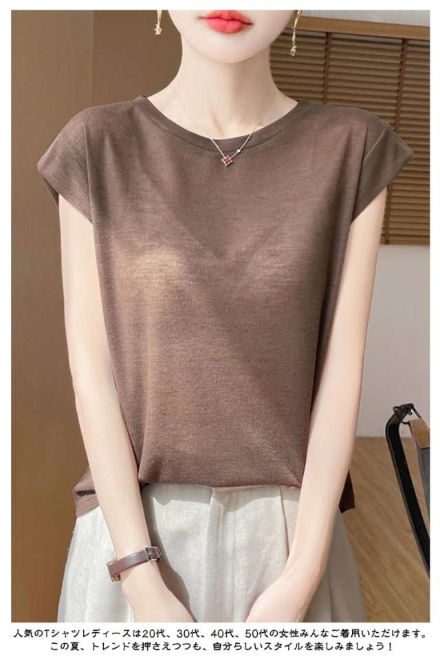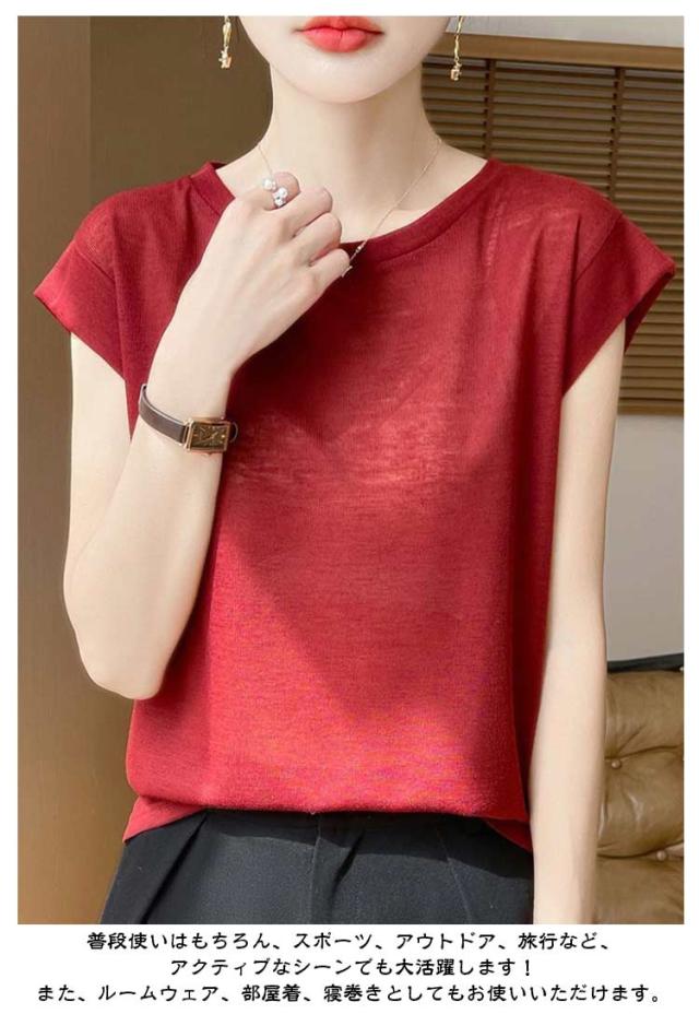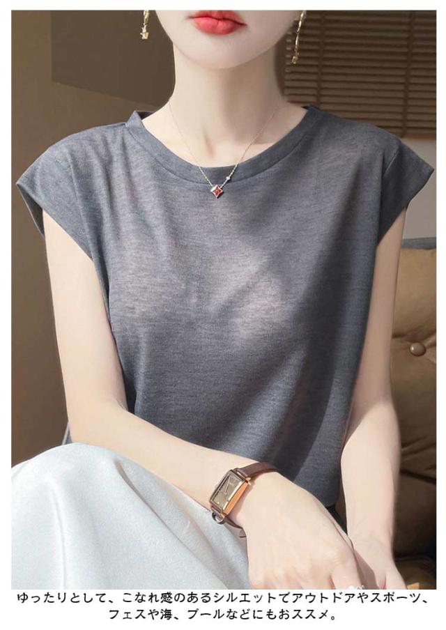 レディース クルーネック ノースリーブ トップス ゆったり ティーシャツ カットソー フレンチスリーブ 夏物 tシャツ 夏 Tシャツ 薄手 プルオーバー 無地 シンプル 袖なし きれいめ ティシャツ インナー カジュアル 大人 普段着 通勤 アウトドア 20代 30代 40代