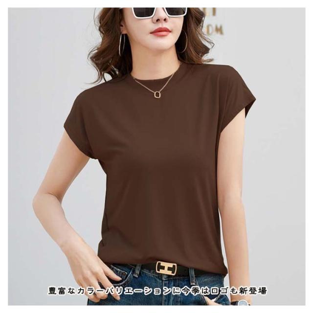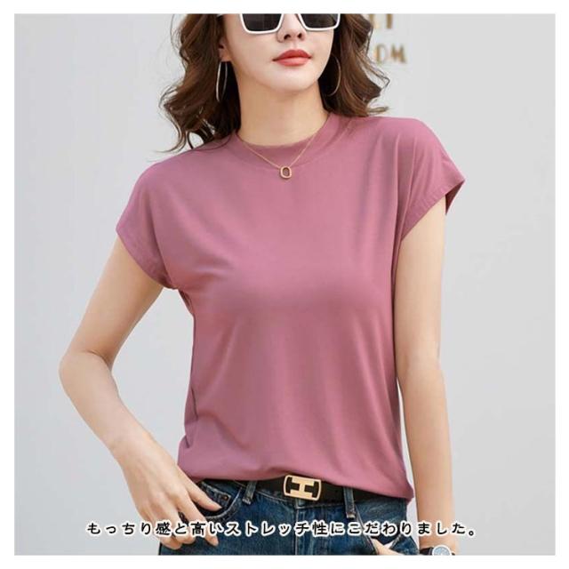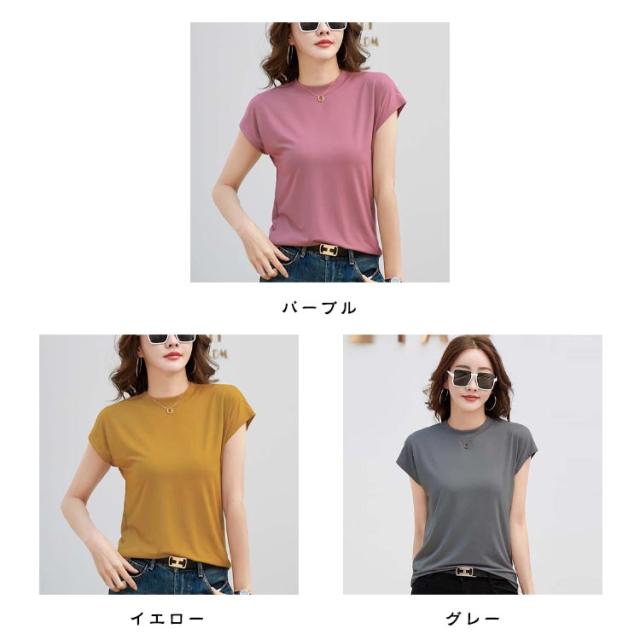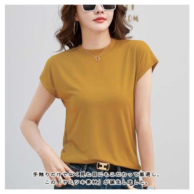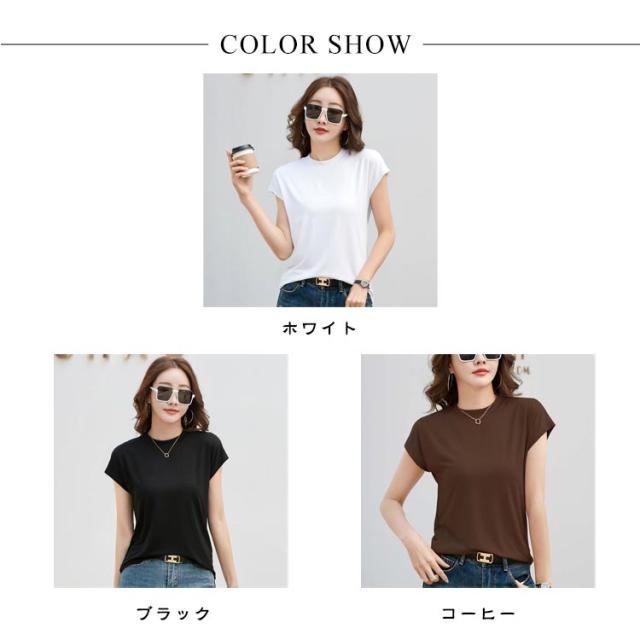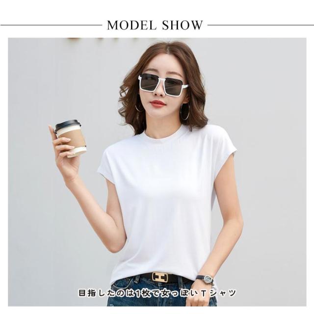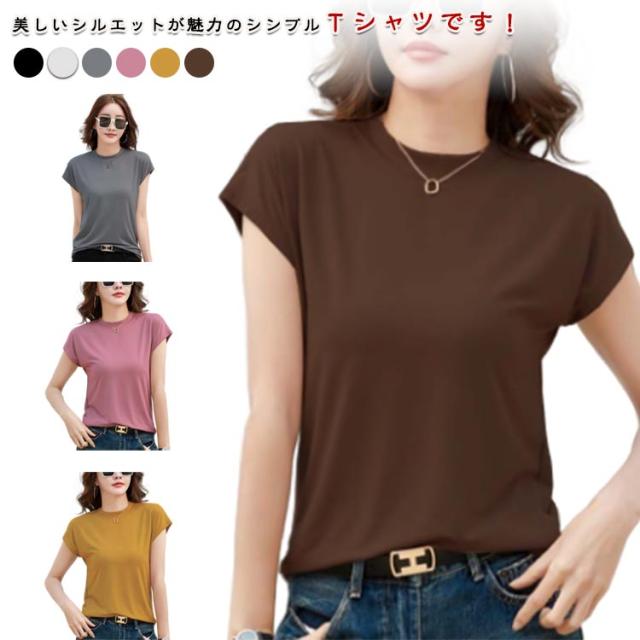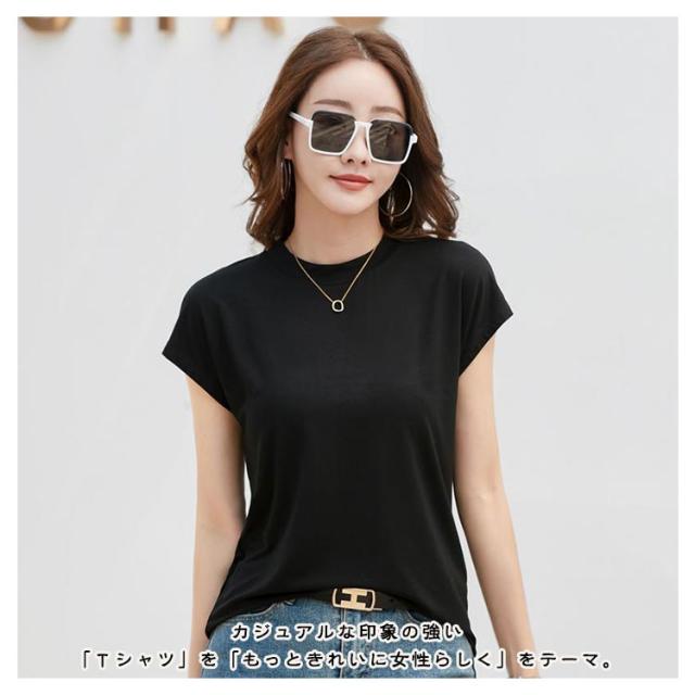 半袖 Tシャツ 程よくゆるいフレンチT Tシャツ フレンチ レディース ノーブラ tシャツ カットソー コットン ゆる カジュアル 半袖Tシャツ ノースリーブ 体型カバー ゆったり クルーネック 着痩せ トップス オフィス シンプル きれいめ 無地 お尻が隠れる 黒 春 夏