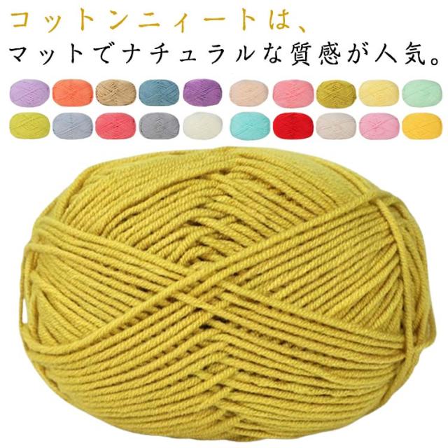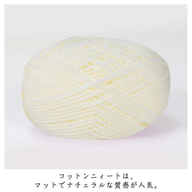 | コットンニィートは、マットでナチュラルな質感が人気。 滑らかな糸は、するするっと編めて柔らかな編みあがり! ふんわり撚り合わせているのでギシギシせず快適に編めそう♪ 何といっても編みやすいのが魅力。 | |