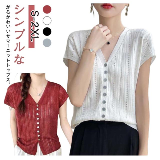 Vネック 半袖 ニット ショート丈 大人 きれいめ おしゃれ 可愛い 春夏 サマーセーター Tシャツ 透け感 サマーニット 春 夏 カジュアル 夏物 Tシャツ レディース トップス ニットソー かわいい シンプル ニット ゆったり 薄手 秋 アウトドア 普段着 通学
