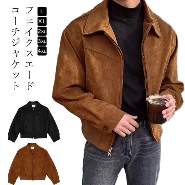 ジャケット レザー コーチジャケット メンズ スエード調 レザーブルゾン ジップアップ ジャケット ショートジャケット ショートブルゾン スウェード調 春 秋 アウター