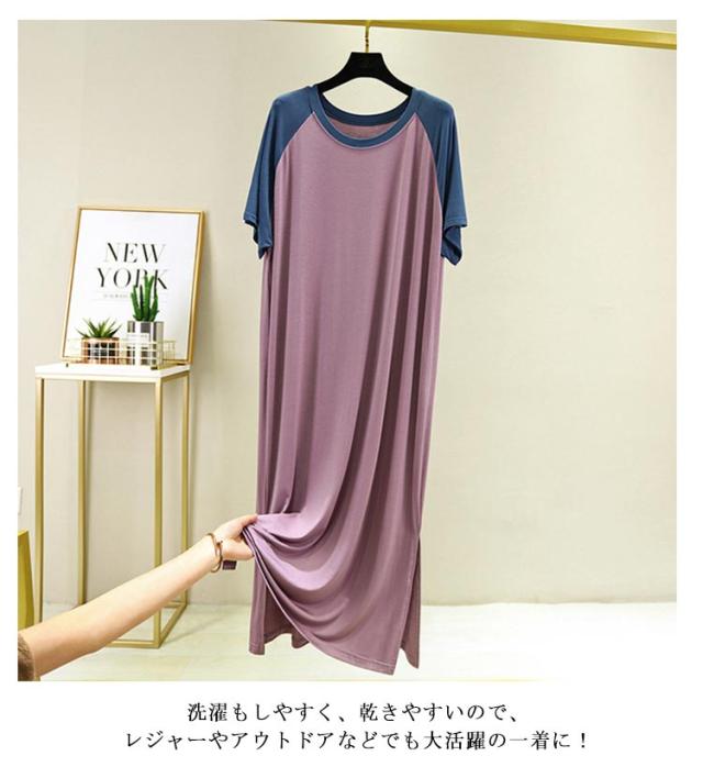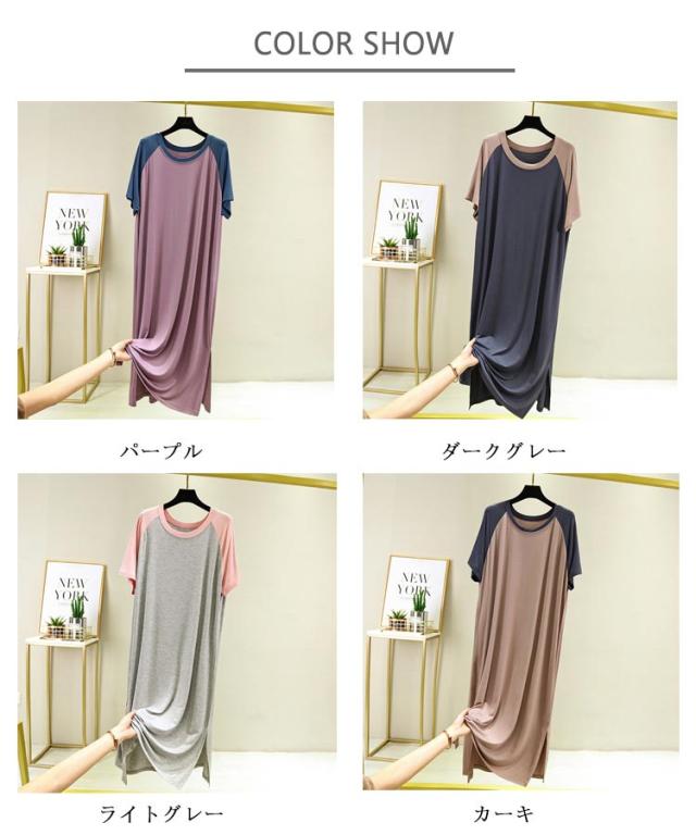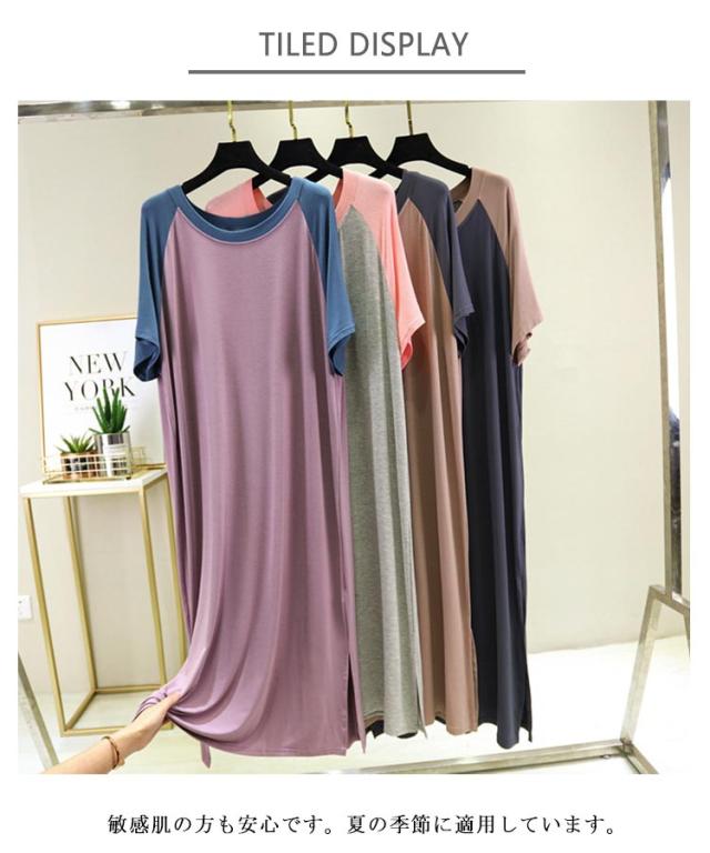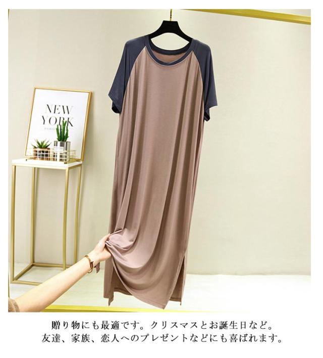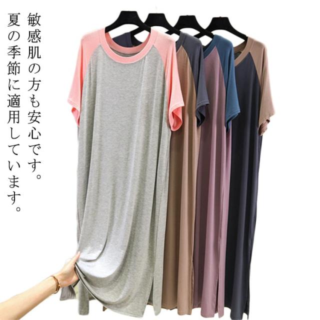 寝巻き レディース tシャツ カジュアル ルームウェア ロングワンピース 半袖 可愛い パジャマ 大きいサイズ 快適 ひんやり モダール スリップ 涼しい 薄手 柔らかい 部屋着 夏向き 薄手 寝巻き 女性パジャマ ネグリジェ 夏