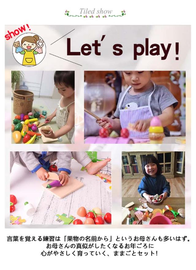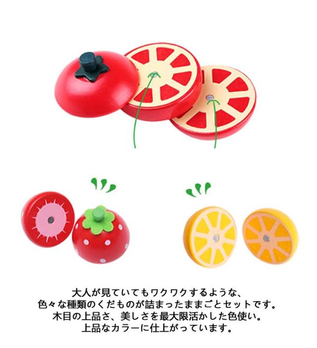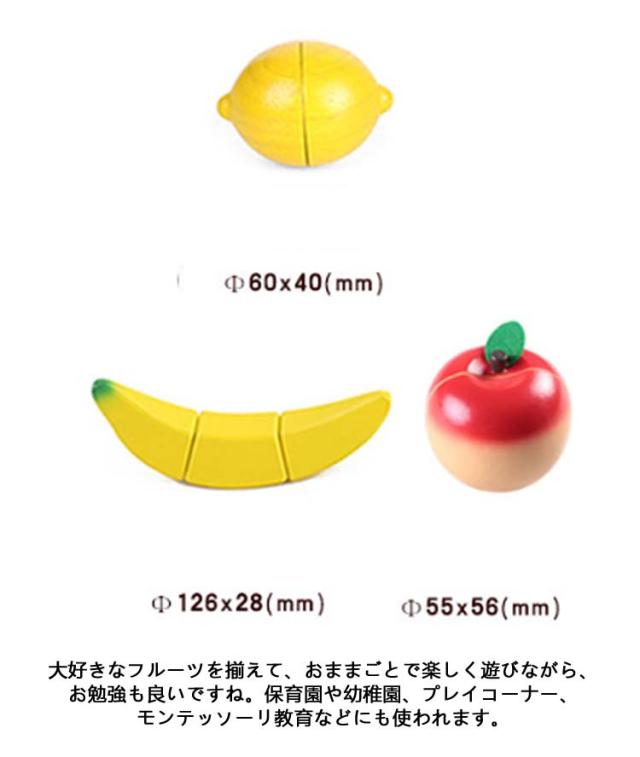 | モンテッソーリ早期開発 知育玩具 おままごとセット かご付き22点セット 言葉を覚える練習は「果物の名前から」というお母さんも多いはず。 お母さんの真似がしたくなるお年ごろに 心がやさしく育っていく、ままごとセット! 大人が見ていてもワクワクするような、色々な種類のくだものが詰まったままごとセットです。木目の上品さ、美しさを最大限活かした色使い。上品なカラーに仕上がっています。 大好きなフルーツを揃えて、おままごとで楽しく遊びながら、お勉強も良いですね。保育園や幼稚園、プレイコーナー、モンテッソーリ教育などにも使われます。 ■トレーが付いているので、切ったくだものを盛り付けたり運んだりすることができます。お片づけにも便利です。クリスマスや誕生日などのプレセントにもオススメ!! | |