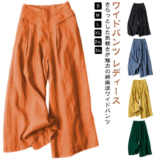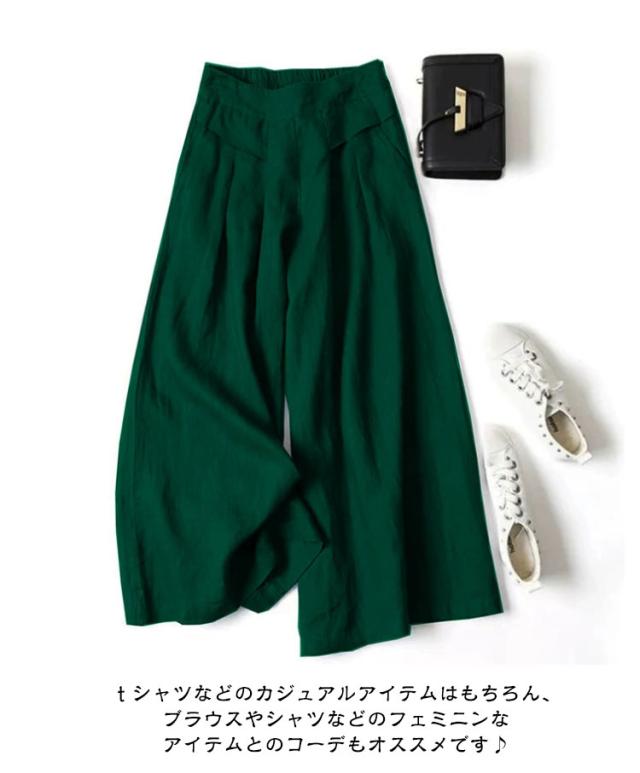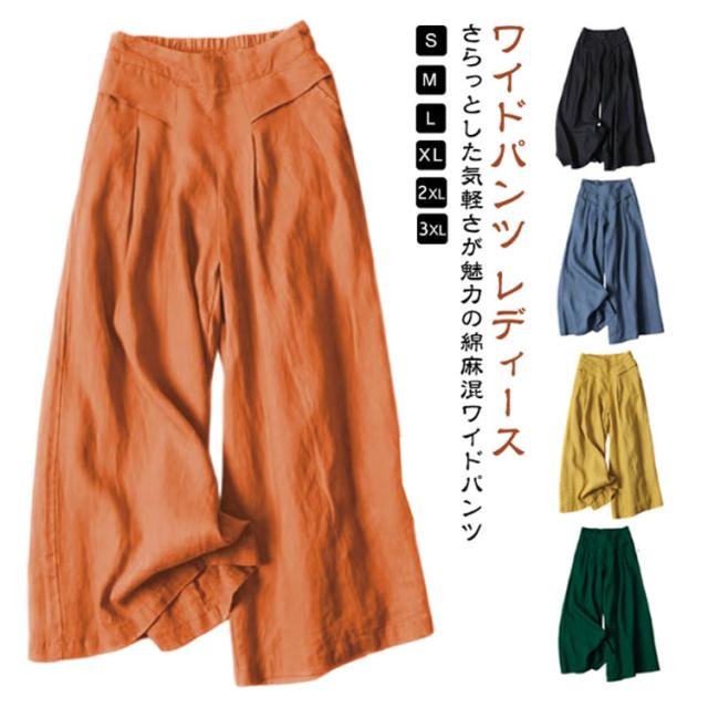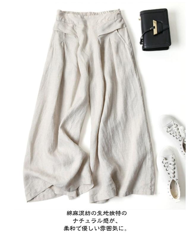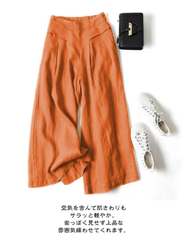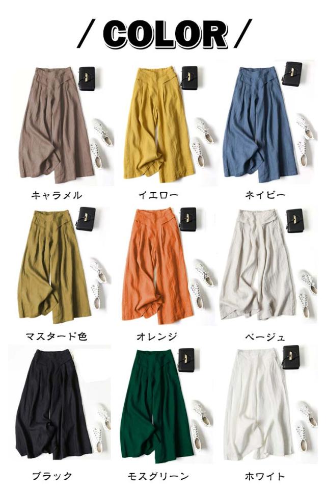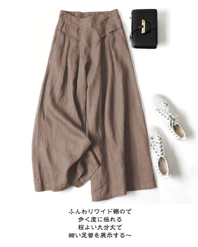 綿麻混 全9色 低身長 キュロット ロング丈 ワイドパンツ プリーツ ゆったり 全9色 スカーチョ コットンリネン 春夏 春夏 レディース 九分丈パンツ 体型カバー 速乾 スカンツ スカート風 フレアパンツ カジュアル